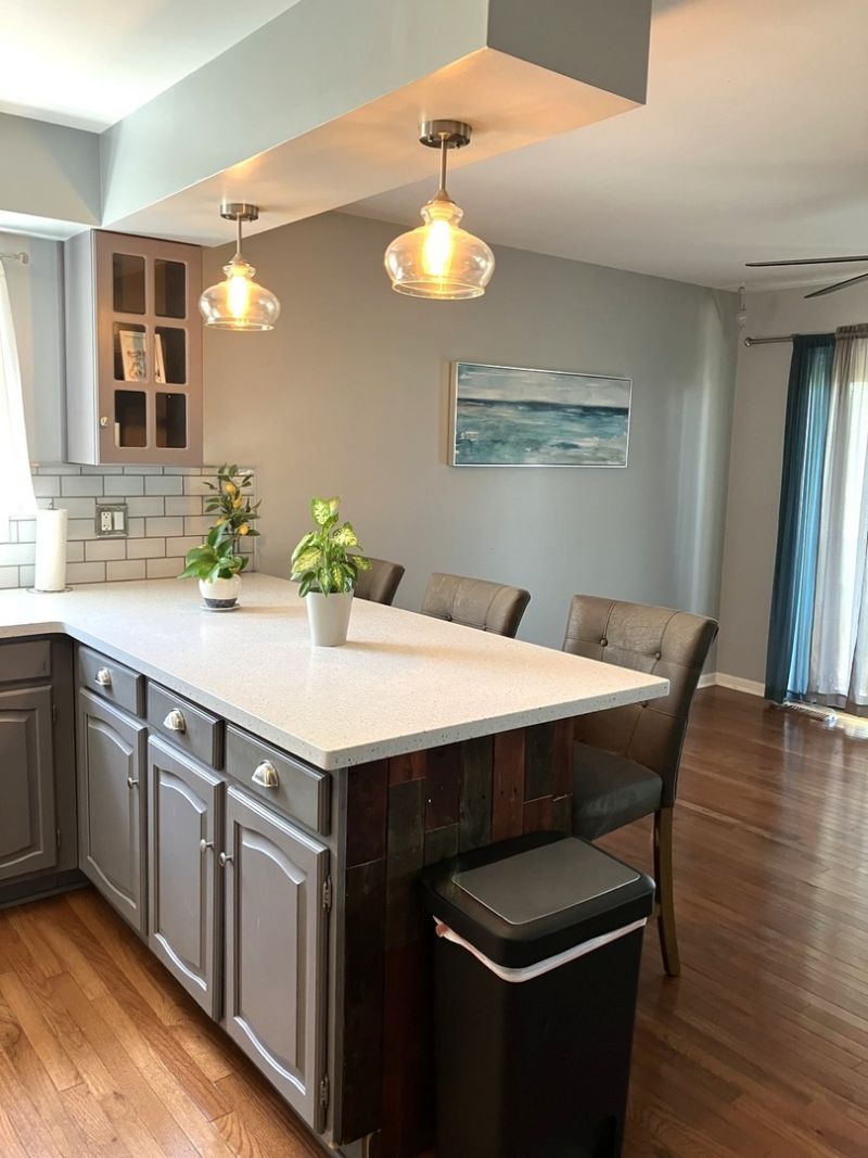 Open concept ranch home with hardwood floors in main areas and new carpet in bedrooms. Rehabbed in 2016 with 2 new bathrooms including Corian counter tops and rain shower in master bath. All 4 bedrooms have ceiling fans. Lots of storage including linen closet and pantry. Insulated 2-1/2 car garage with pull down stairs leading to attic storage. New furnace and AC in 2025 and new PVC pipes connect to main sewer have just been replaced. Bright laundry room. Kitchen has peninsula with seating. Dining room with patio doors to large concrete patio. Fenced yard, shed and the start of an organic garden. Elementary school and park very close by.