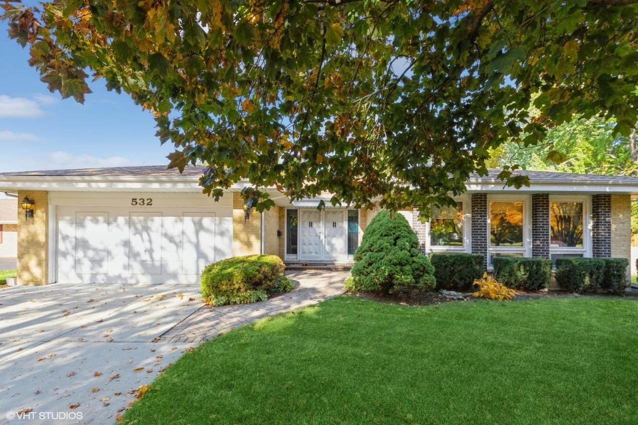 Big all-brick ranch on a 1/3 acre lot! There is lots of room to spread out and enjoy single level living in this well-maintained home with numerous recent updates to roof, windows, and mechanicals! Plan features include 4 bedrooms, two baths, a two-car attached garage, a sunny three-season room, a huge living/dining room up front, a nicely updated kitchen, and a cozy family room with fireplace. There are also three skylights that add natural light to the kitchen, hallways, and primary bath. The kitchen features solid surface counters, maple cabinets, and a large eating area with a bay window overlooking an east-facing fenced courtyard that is a perfect spot to securely let your dog out! The bedroom wing features a spacious primary bedroom suite has it's own skylit bath and two closets. There are three additional bedrooms and a recently updated hall bath that features a step in spa tub. There is hardwood flooring in three bedrooms and the carpet in the primary suite and hallway likely has hardwood flooring under it. Numerous accessibility modifications are in place including walk-in tub, hand rails, etc. This highly desirable location is close to the bike trail, schools, and downtown Libertyville. Schools are Copeland Elementary, Highland Middle (D70), and Libertyville High School (D128).